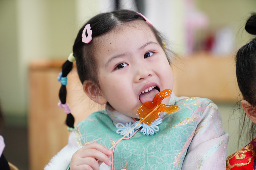 画“糖人”,顾名思义就是以糖做成的画,是一种民间传统手工技艺,用小勺子舀起糖稀,随意挥洒,随着糖液缕缕洒下,各种各样形状的糖画就成功啦!瞧,孩子们期盼的小眼神里,惊喜地凝望着那些融化的糖浆化身成可爱的小兔子、小猪......,嘴里裹着大大的满足,心里甜蜜蜜。