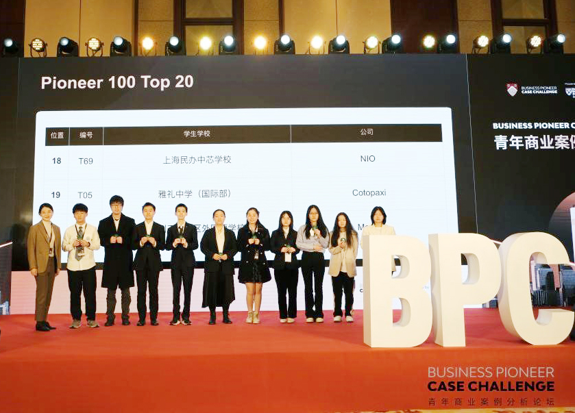 在经历了两个月的孵化与全国论坛五天激烈的角逐后,园外国际高中部肖欣瑶、戴雯茜、葛伊然组成的小队进入Pioneer 100公司榜单前20强,获得代表中国高中生实地探访哈佛校园,参与MBA级别的全英文案例分析挑战的资格。