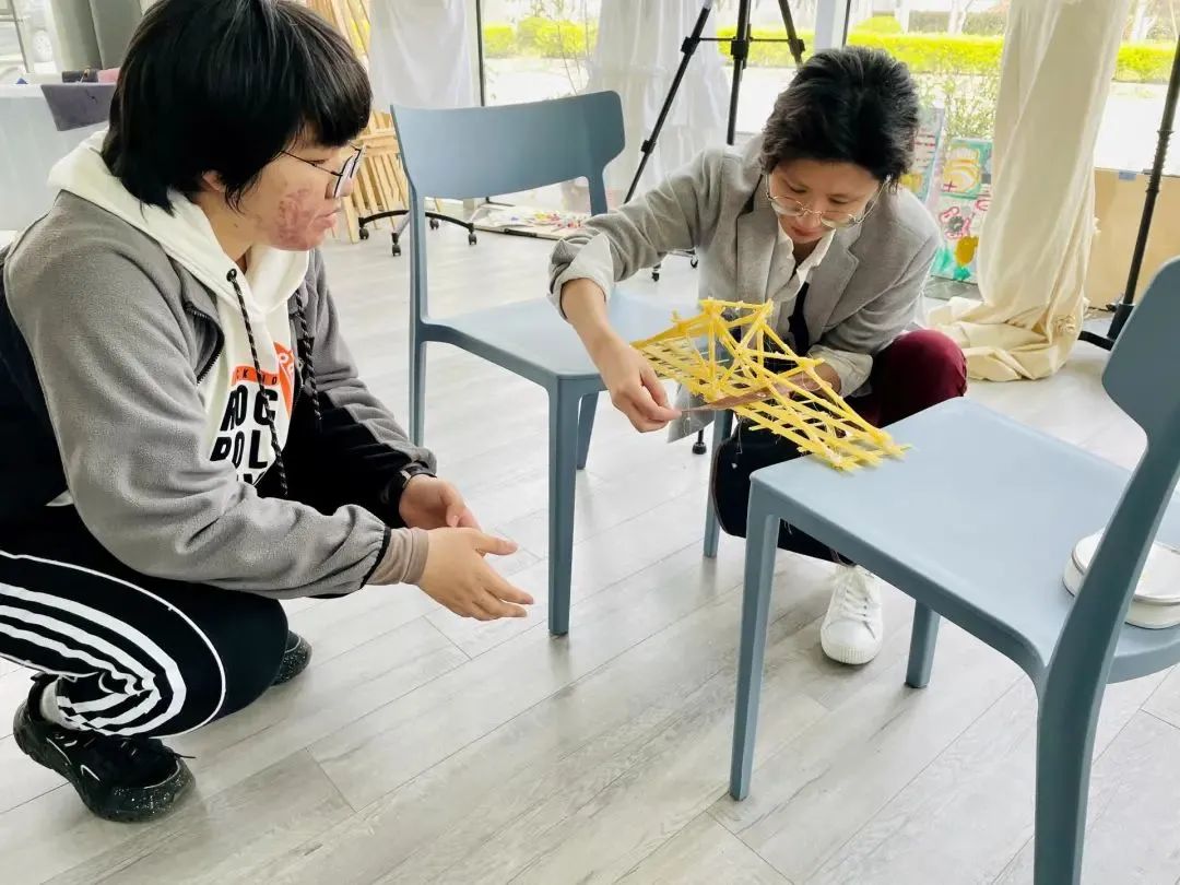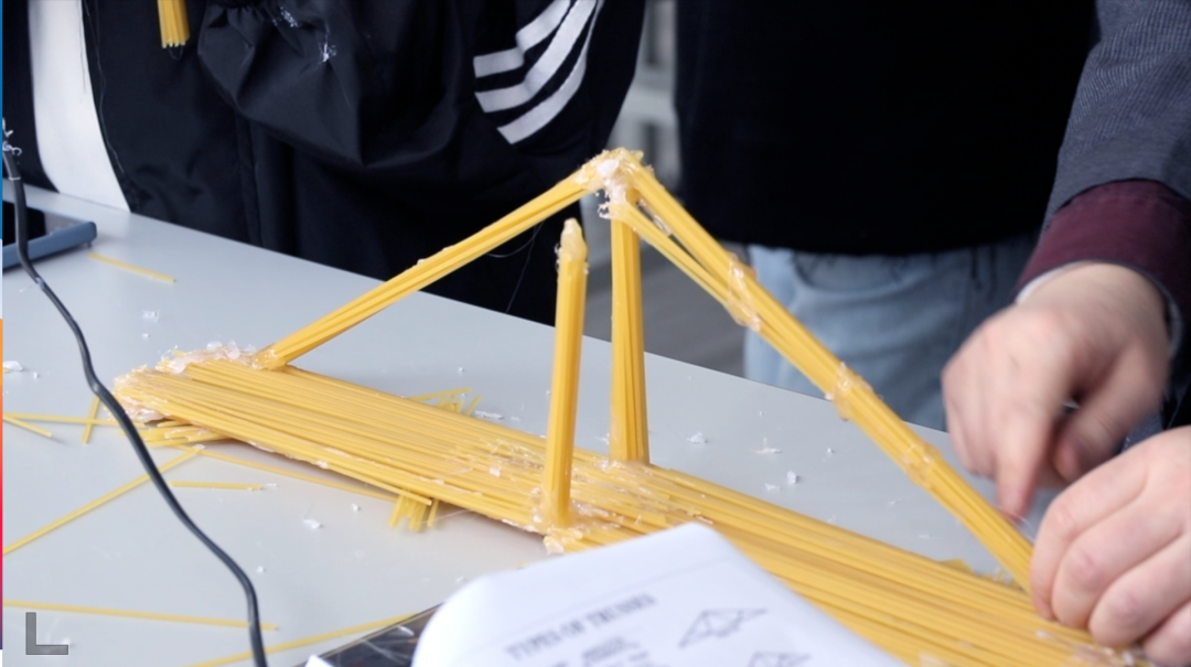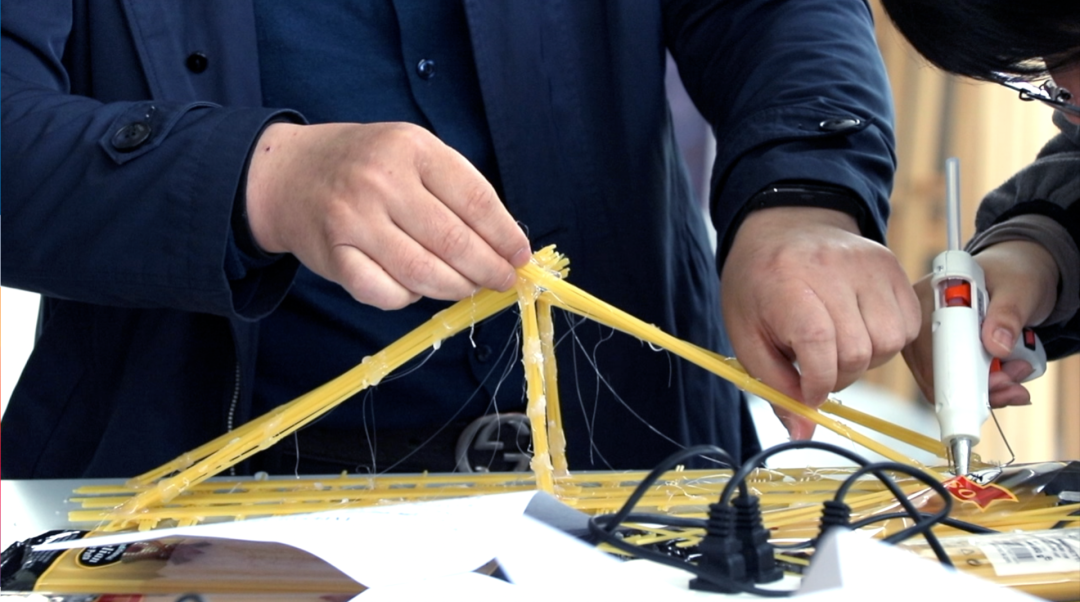 本次空间设计体验课,老师带大家使用生活中的食材——意大利面,来建造桥梁模型。如何巧妙使用结构,使易碎的意大利面承受尽可能多的重量?