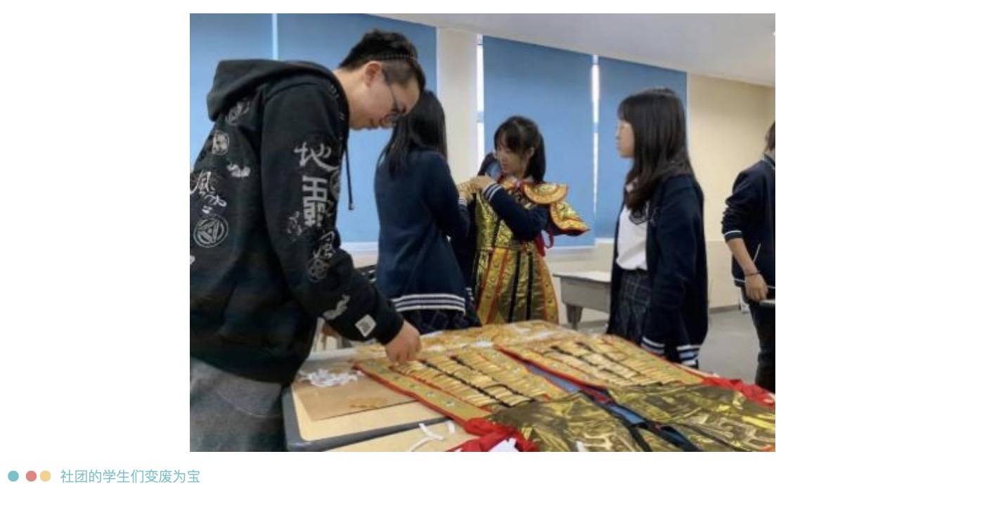 园外还有动物保护、义卖和环保回收等服务社团。例如环保社团的成员曾变废为宝,使用废弃的塑料瓶制作学生表演时所用的盔甲!
