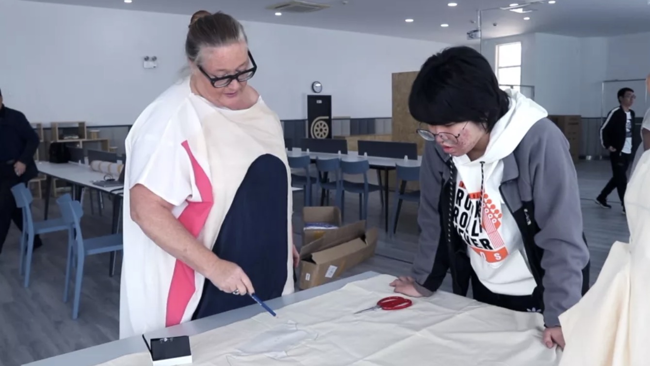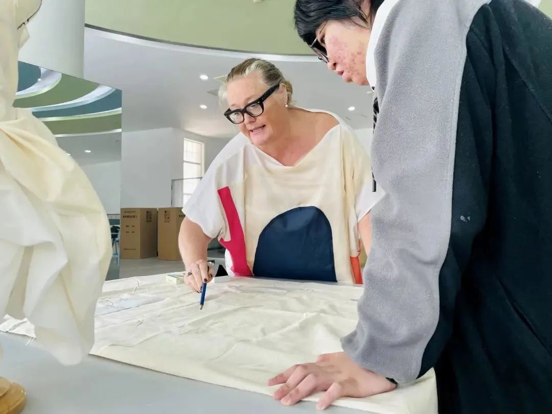 学术主任Lesley准备了布料材料、人台,手把手带着有兴趣的同学体验服装设计的魅力。