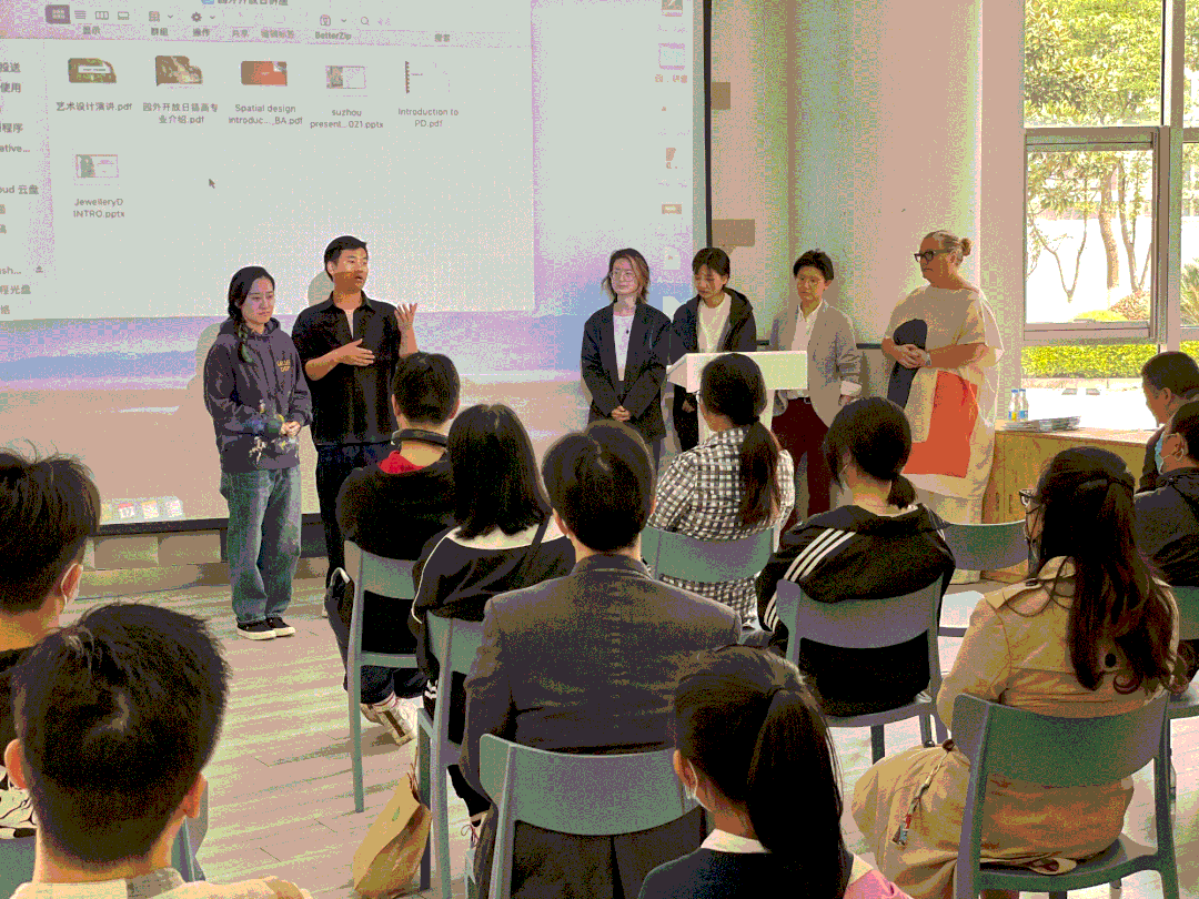 A-Level艺术课程中心学术主任Lesley、建筑设计专业老师Jaydee、产品设计专业老师Shin、珠宝设计专业老师Nina、插画设计专业老师Kun,五大艺术设计专业老师准备了专业内容介绍环节,只为在短时间内清晰明确地给各位家长和同学们介绍清楚专业内容、走向、作品和不同专业未来的就业前景方向。