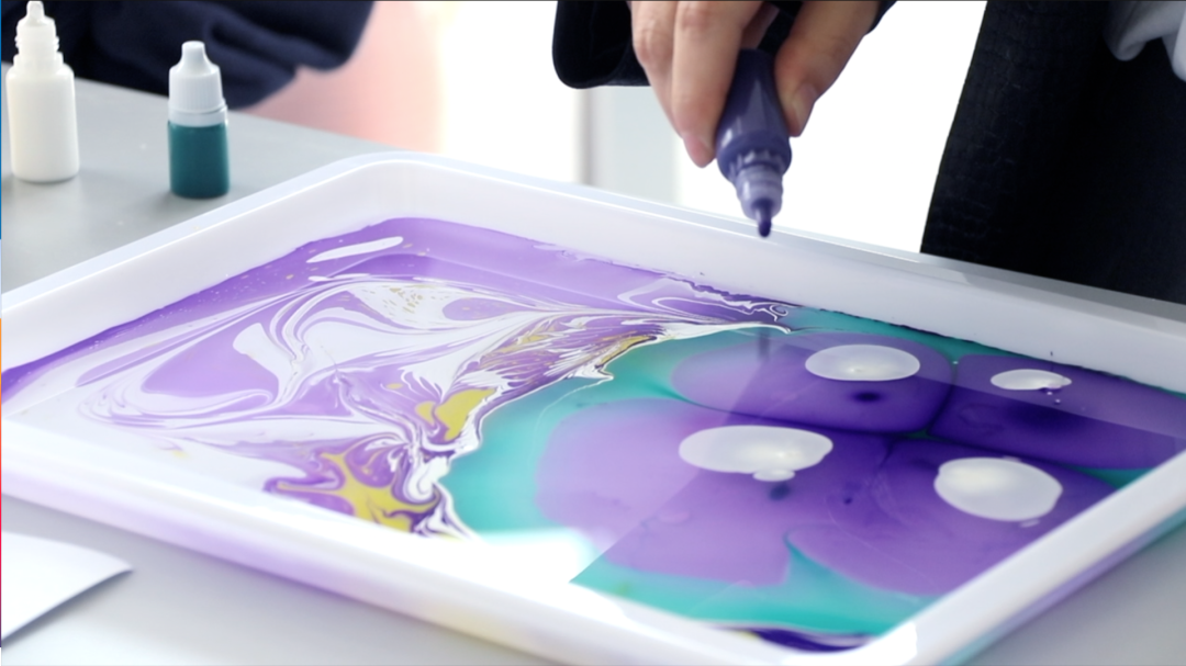 插画导师Kun率先上手,亲手演示了湿拓画的做法。
