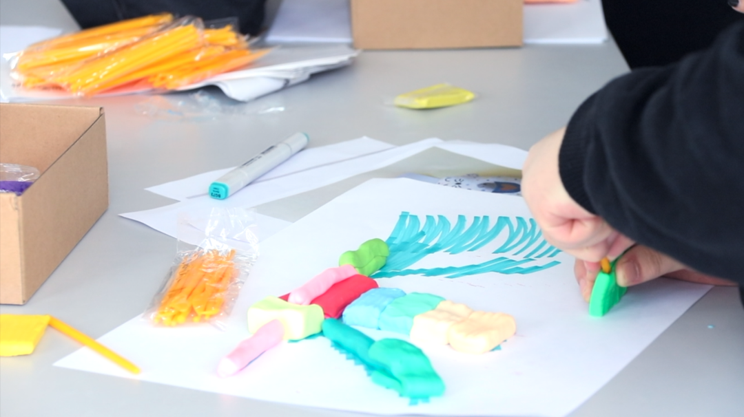 同学们在产品设计导师Shin的指导下,各自以创意画作为基础,对应创意画作,用软陶将其制作成3D立体的玩偶。