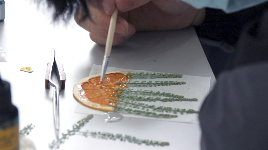在Nina老师的细致讲解下,同学们跃跃欲试,在动手中熟悉不同材料间的特性和用途,尝试用树脂留住春天的花朵。