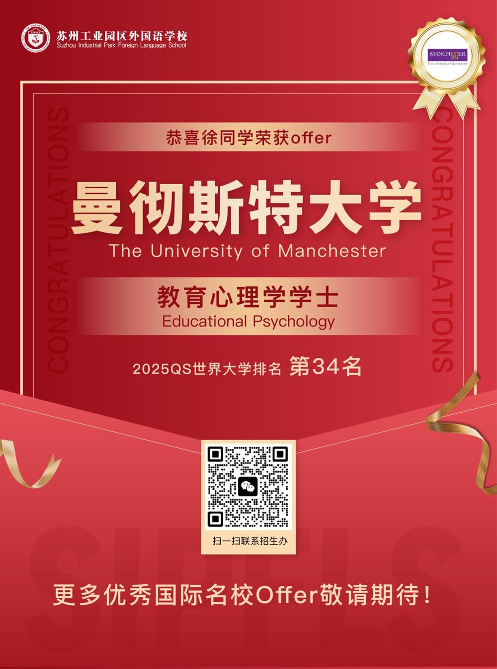 除澳洲方向外,还收获英国方向曼彻斯特大学、布里斯托大学、华威大学、伯明翰大学、南安普顿大学等名校offer,目前共收到近50封offer。恭喜所有收获梦校录取的同学们!2025届海外大学录取正在持续更新中,让我们一起期待更多好消息。