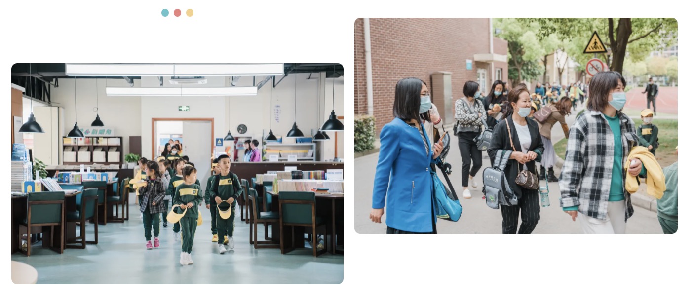 之后,小朋友们逛起了校园,从体育馆到图书馆再到艺术厅,操场上还看到了园外的小学生们在做课间操,羡慕及期待溢于言表。